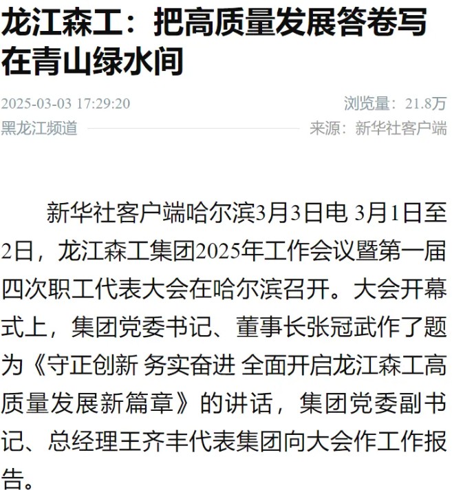 | 【媒體關注】新華社|龍江森工:把高質量發展答卷寫在青山綠水間 |